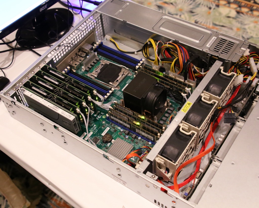 SmartM configured the server with an Intel 750 NVMe, but the specific test shown in the article (out of five in the demo) is a single thread test. There is another multi-threaded test that reaches higher ops/sec.