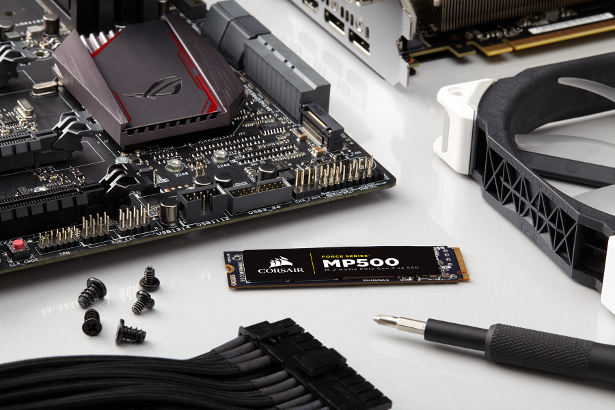 Corsair is announcing immediate availability of their newest flash storage product, designated as the Force Series MP500 range of M.2 NVMe PCIe SSDs. With sequential read speeds of up to 3000 MB/s and sequential write speeds of up to 2400 MB/s, the Force Series MP500 represents Corsair’s fastest-ever solid state storage devices. This level of performance is some 5 X faster than what can be achieved via a standard SATA 6 Gb/s interface, and does so in an ultra-compact form factor.
