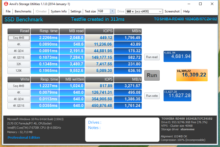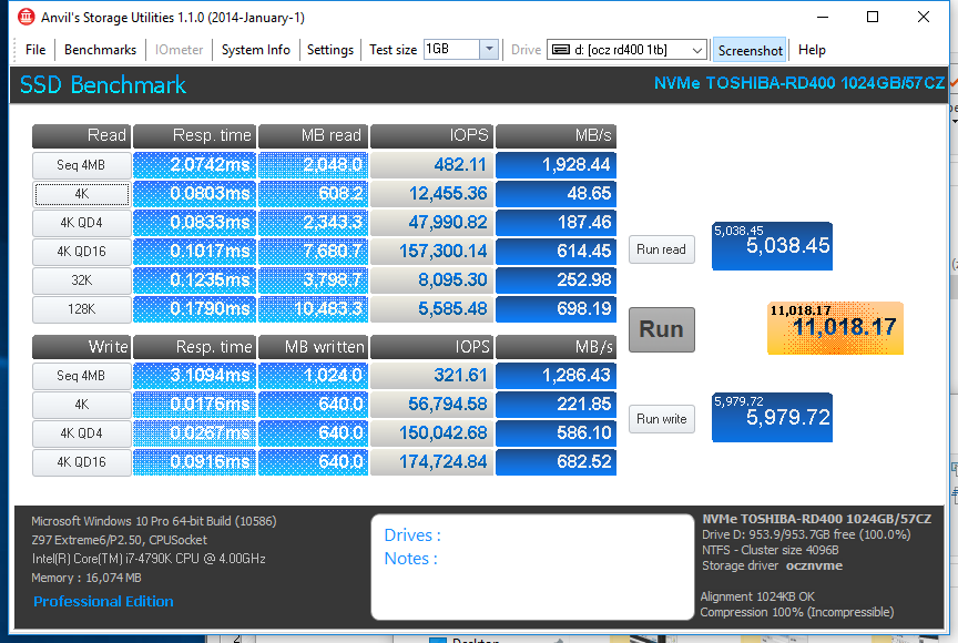 I have a slightly similar story. I’ve got a Toshiba XG4 OEM drive, but the Microsoft NMVe driver delivers abysmal random write performance. So I installed the OCZ RD400 driver, and now my performance is much better. Not only that, but the OCZ driver allows the OCZ SSD utility to recognize my drive whereas it couldn’t do so when I had the Microsoft driver.