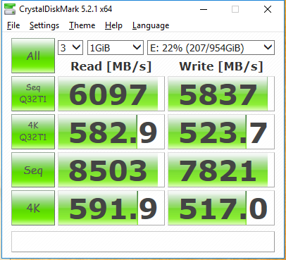 To explore this bug’s range of compatibility a little more, we took out our Kingston Hyper X Predator (a non-NVMe based PCIe SSD, but rather AHCI based) to see if we could enable momentum cache on it, and low and behold, we were unable to. Also, it seems if you use a proprietary driver for your non-Crucial NVMe SSD, it disables your ability to use the feature. Furthermore, as a disclaimer, doing this is not officially not supported and due to the volatile nature of DRAM, data could be lost upon an unexpected power outage. Thus, it is recommended to have a UPS or some sort of battery-backed power source in place before enabling and we do not take responsibility for any data loss that may occur.