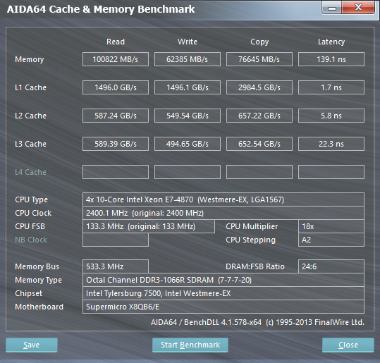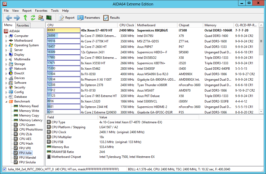 The AIDA64 CPU detection engine, hardware monitoring module, System Stability Test, and all memory and processor benchmarks have been extended to cover up to 128 logical processors and 2 processor groups. Benchmarking and stress-testing 2 and 4-way AMD Opteron and Intel Xeon server systems is now possible with AIDA64 v3.20.
