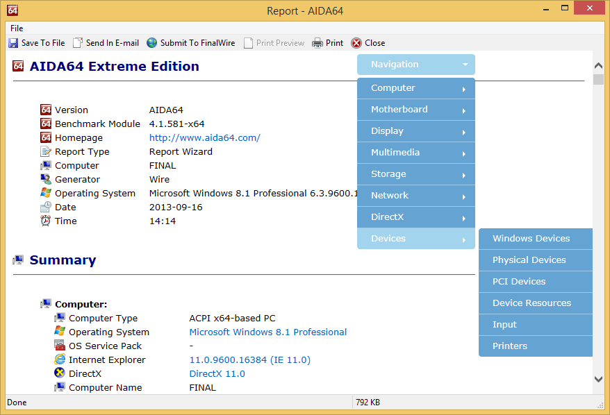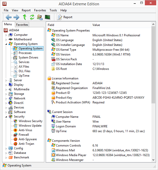 Operating system details, installed programs list, and security software information for the final production build of Microsoft Windows 8.1 and Windows Server 2012 R2. Optimized and fixed ACPI query, tree enumeration and temperature measurement modules. Extended ACPI table details for MSDM table.