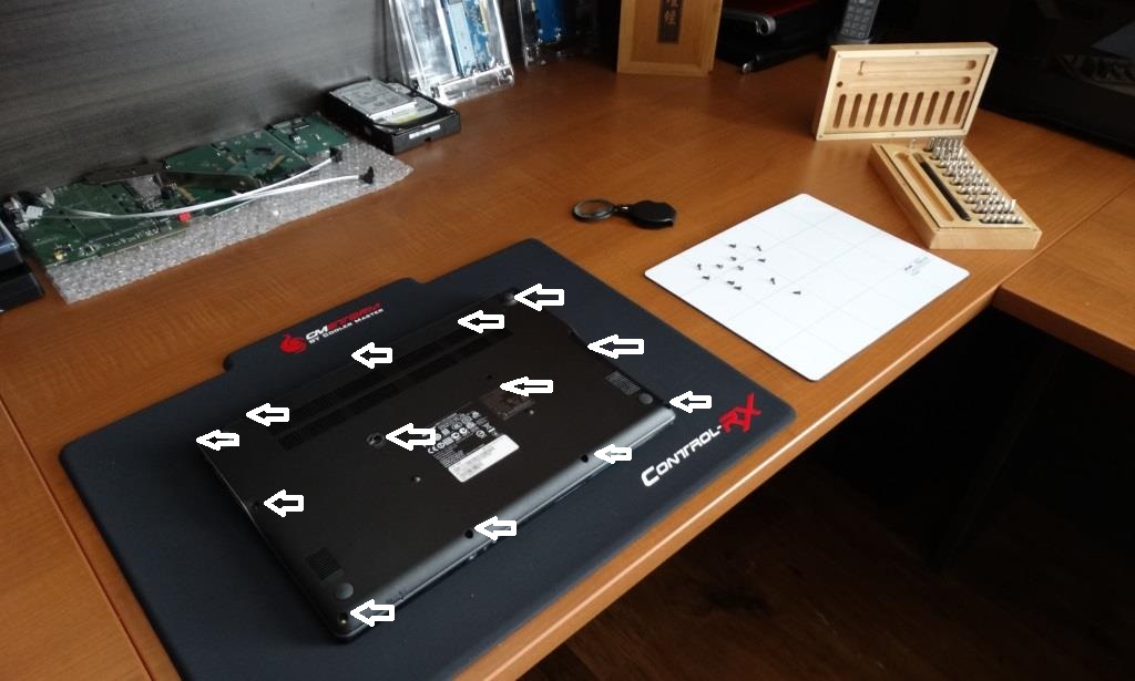 - Turn it over and remove the 13 screws, including one covered by security tape;