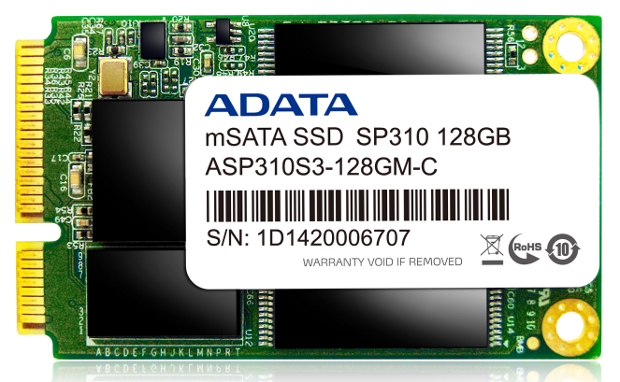 ADATA Technology, a global producer of high-performance DRAM modules and NAND Flash storage devices, is announcing the launch of their new Premier Pro SP310 mSATA solid state drive (SSD). Geared toward users who are seeking a more economical means to upgrade to SATAIII (6 Gb/s) specifications, the SP310 can also be used as a caching SSD paired with a traditional HDD via its support for Intel Smart Response Technology (IRST). Such a hybrid setup can attain speeds that compare to those of a system with an SSD as the primary drive.