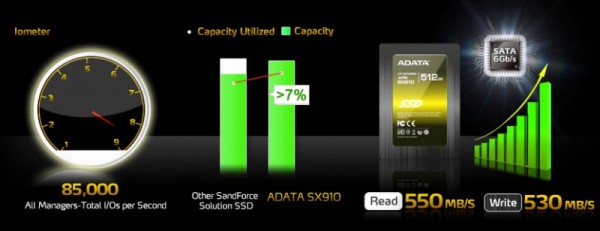 Performance is described at 550 MB/s read and 530 MB/s write with IOPS listed at 85,000 IOPS at randm 4k write aligned disk access.ADATA achieves full use of a drive’s available storage capacity by maximizing utilization of NAND flash components via newly optimized firmware.