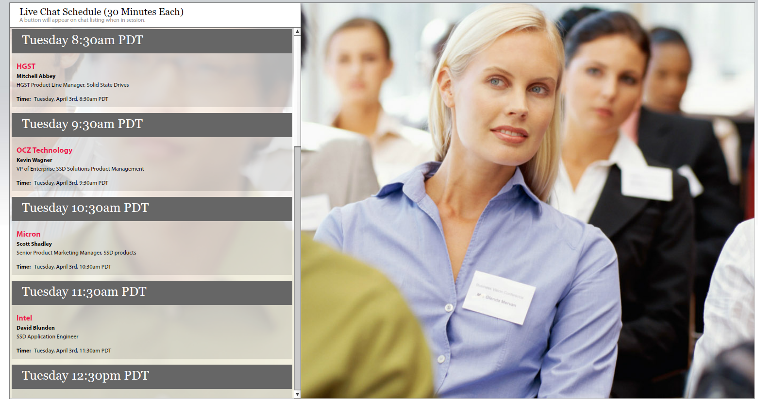 The Summit is totally FREE and registration is necessary to join the program, thus enabling you to see tons of SSD products, watch many pertinent webinars and participate in live chat sessions.
