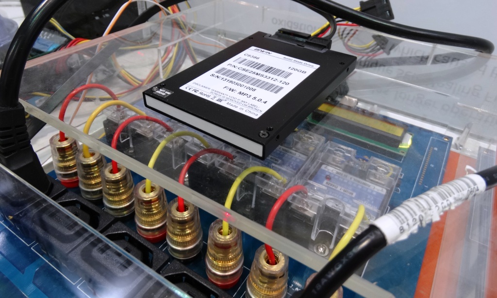 Last but not least, BIWIN had a very interesting ‘active test bench’ that showed off the capabilities of LSI SandForce controllers in a power loss scenario. Using their ‘LSI SandForce Driven’ S8386 SATA 3 MLC SSD capable of 559MB/s read and 532MB/s write transfer speeds, their test system monitored data loss or SSD adnormal behaviour after sudden power loss. Although in the first day of the visit, the LSI SandForce solution had withstood 45 power loss simulations and remained intact.