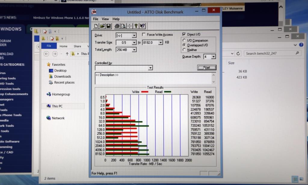 I have to admit that I did get my wrists slapped for quickly instally ATTO after discovering the XP941 inside. I was politely asked to mention that this was a pre-production display sample and much could happen before availability. As a matter of fact, there has been absolutely no mention of the ATIV containing PCIe M.2 power prior to our discovery. Here is a closer look at the performance: