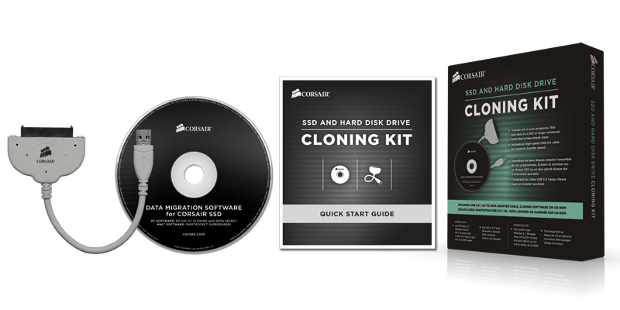 Corsair’s SSD & Hard Disk Drive Cloning Kit permits migration of your hard drive data to an SSD by merely selecting the source and destination drives and clicking a button. The kit is designed for use when installing a new Corsair SSD, and includes the migration software, a USB-to-SATA cable, and a quick-start guide. The included cable supports both USB 3.0 and 2.0, to attain transfer rates of up to 180 MB/s. The Corsair cloning kit is compatible with Windows XP, Vista, 7, 8, and OS-X. The Corsair Hard Disk Drive Cloning Kit’s product page can be viewed here. It comes backed by a three year warranty.