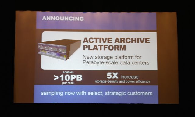 Active Archive represents a new category of storage that is optimized for greenfield data growth, and servers newly created data that otherwise is not able to be stored and readily accessed with classic technologies. Active Arhive’s new storage capacities are measured in PB (petabytes), rather than TB (terabytes) or GB (gigabytes). Active Archive platforms can deliver density exceeding 10PB in a single datacenter rack.