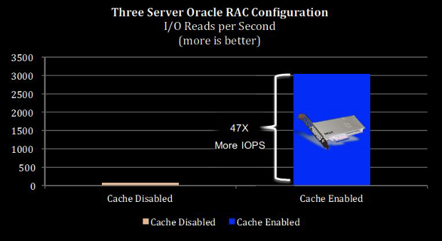HGST Virident ClucterCache + Share for Oracle RAC — HGST delivers the ability to share the storage capacity of a FlashMax II device in caching mode. ClusterCache combined with Share can be thin-provisioned for run-time use, which effectively makes the entire capacity of the PCIe flash device available for cache use. ClusterCache with Share offers significant performance improvements compared to a configuration where no PCIe flash is present. With Oracle Enterprise Manager, it is possible to realize a 10X increase in throughput, and an increase of more than 47X the IOPS.