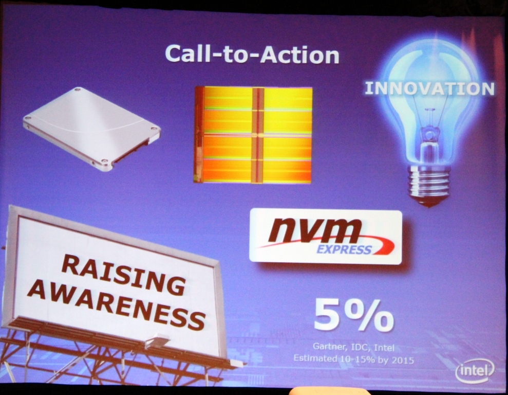 Of uber importance here is Intels admission that they will be backing and utilizing the NVM Express specification. With PCIe SSDs there is a coming “war of specifications” so to speak, with several players lining up to become the industry standard. The current specification has several drawbacks to the performance of PCIe SSD devices and controllers, so there is an urgent need to find a suitable advancement, or totally different specification for use. It is clear Intel is intent upon utilizing NVMe for its future devices.
