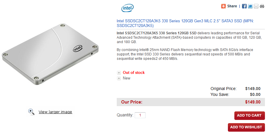 There is some new evidence that Intel’s commitment to SandForce could be greater than previously thought. Recent product listings for a new Intel 300-series SSD have cropped up at e-tailers all over the globe, and like the “Cherryville” 520 series, it also looks to be LSI SandForce-powered.