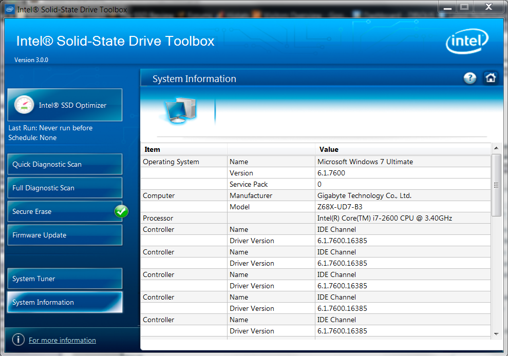 System Information is yet another interesting utility found in the Intel SSD Toolbox.