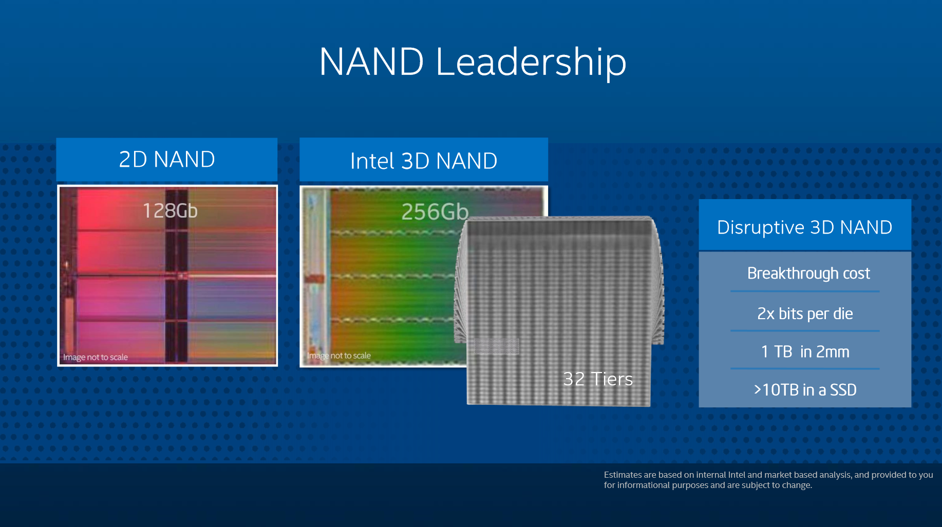 Intel’s new 3D NAND will be based upon a 32 layer stack with a 256Gb density in each die. 3D NAND will be similarly manufactured with a 384Gb density per die. Intel claims that this will enable 1TB capacities in a 2mm package, Rob Crooke stating ““We’re no longer having to make a compromise on how much storage we can fit in there,”. Within two years, Intel claims to be moving storage capacity ahead leaps and bounds with 10TB SSDs being the result of today’s news.