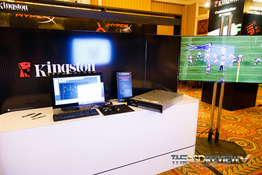 Moving from the consumer to enterprise side of things, Kingston also had their KC310 SSDs demoing in a 16 drive RAID 0 array. Speeds pushed 3GB/s+ for realtime 4K video capture and streaming in a Psitech Vortex Sports Broadcast Replay system. This system has allowed for instant pan and scan replay as well as on-the-fly video editing. Quite impressive!