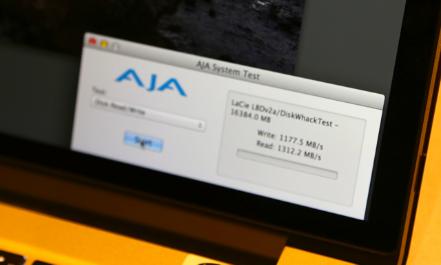 We will be testing this unit soon enough and production and availability isn’t expected until Q3 2014. The only performance we could confirm during this visit was that seen on the screen, with their testing through the AJA System test on a Macbook Pro as seen here: