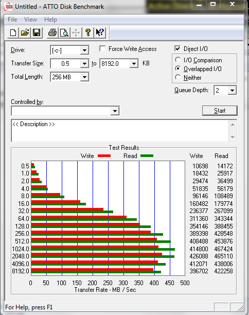 ATTO Disk Benchmark is perhaps one of the oldest benchmarks going and is definitely the main staple for manufacturer performance specifications. ATTO uses RAW or compressible data and, for our benchmarks, we use a set length of 256mb and test both the read and write performance of various transfer sizes ranging from 0.5 to 8192kb. Manufacturers prefer this method of testing as it deals with raw (compressible) data rather than random (includes incompressible data) which, although more realistic, results in lower performance results.