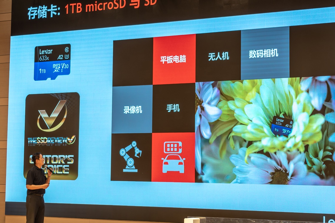 We were a bit surprised a short while later when we received just a bit of recognition from Mike Chen, President of Lexar International, as he spoke about Lexar’s latest product family, the High Performance 633x 1TB MicroSDXC, the Professional 1TB SDXC and the SL100 Portable SSD.