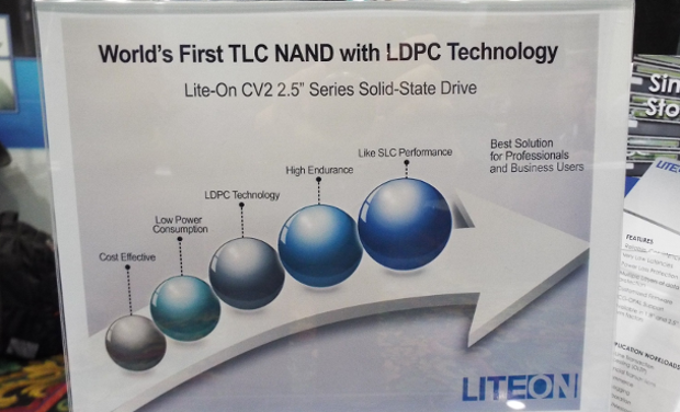 On the client side of things, LiteOn is currently developing the CV2 solid state drive. This will be a 2.5″ form factor SSD that pairs a Marvell 88SS1074 controller with Toshiba A19 TLC NAND. It is to be offered in capacities of 128GB, 256GB and 512GB. All three capacities are rated for sequential read speeds of (up to) 500MB/s, with sequential writes of (up to) 440MB/s for the 128GB, and (up to) 480MB/s for the 256GB and 512GB versions. Random 4K read speeds are stated as (up to) 85,000 IOPS for the 128GB, and (up to) 100,000 IOPS for the 256GB and 512GB. Random 4K write speeds come in at (up to) 80,000 IOPS for the 128GB, with the 256GB and 512GB at (up to) 83,000 IOPS. The CV2 is also one of the first client SSDs to offer LDPC (low density parity check) error correction. This drive will also carry a three-year warranty. LiteOn anticipates availability for this SSD to be May or June of 2015.
