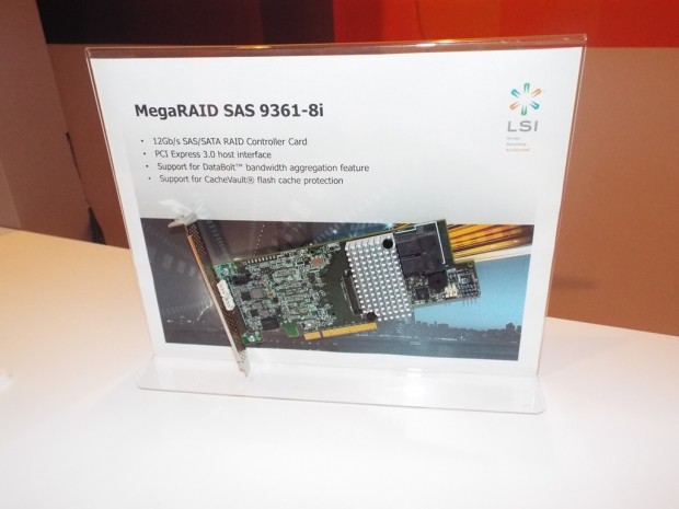 And of course LSI dominated the displays, including showing their latest half-height, half-length PCIe Gen 2X4 SSD, this one featuring Micron NAND, and a MegaRAID 9361-8i 12Gb/s SAS/SATA RAID controller card.