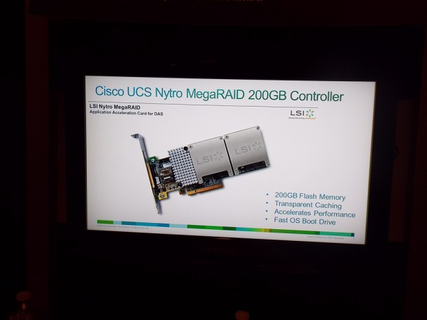Shown here, Cisco has already developed their own packaging for their version of LSI’s UCS Nytro MegaRAID 200GB controller card.