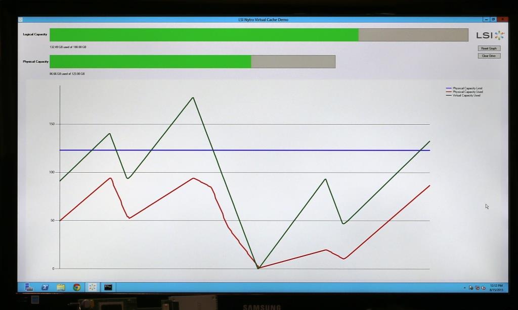 This can only be done in LSI SSDs as they use compression in their storage and, as much as it might be intended for new generation controllers, this demo was being done on the SF-2000. A bit disappointing is that, although it can be used on the SF-2000 and todays LSI SandForce SSDs, it is not intended for the consumer and is meant specifically for hyperscale data centers and cloud servers.