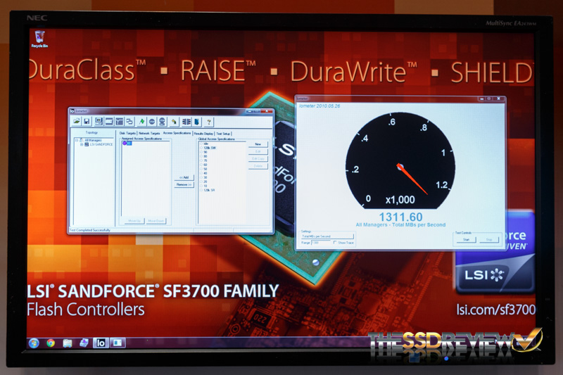 Currently, we are seeing the SF3700 controller reaching 1300MB/s in mixed 80%/20% read/write workloads in this demonstration.