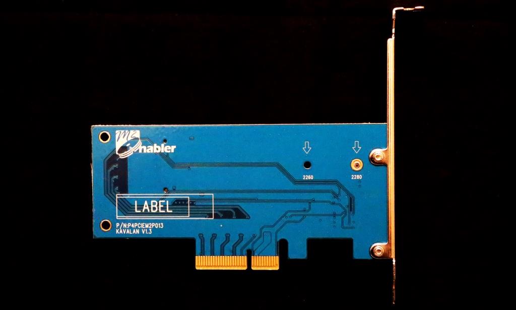 This is the M.2 Enabler and is the brainchild of JW Electronics of Taiwan. This item cannot be found for sale and is a PCIe 3.0 X4 M.2 SSD Adapter, fully compatible with all previous PCIe interface generations. Considering that PCIe 3.0 has a, 8GT/s bit rate and delivers up to 985MB/s per lane, this little baby is capable of up to 3.9GB/s throughput down the road when we see PCIe 3.0 stream into SSD controllers.