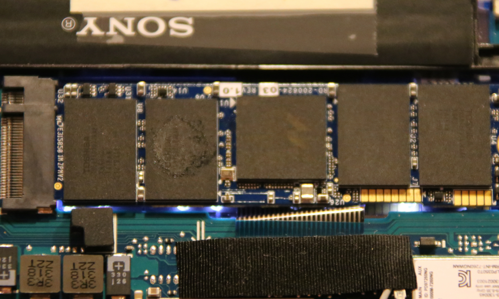 Display testing of the Altaplus at Computex resulted in 1.3GB/s performance and this is what it will perform at in the demonstrator Sony Vaio ultrabook on display. We would hazard to guess this controller will even surpass the stated 1.4GB/s eventually. This shot below displays a well used Altaplus in the Sony Vaio.