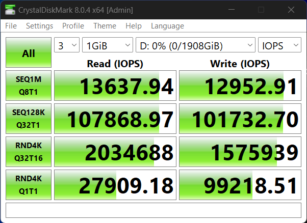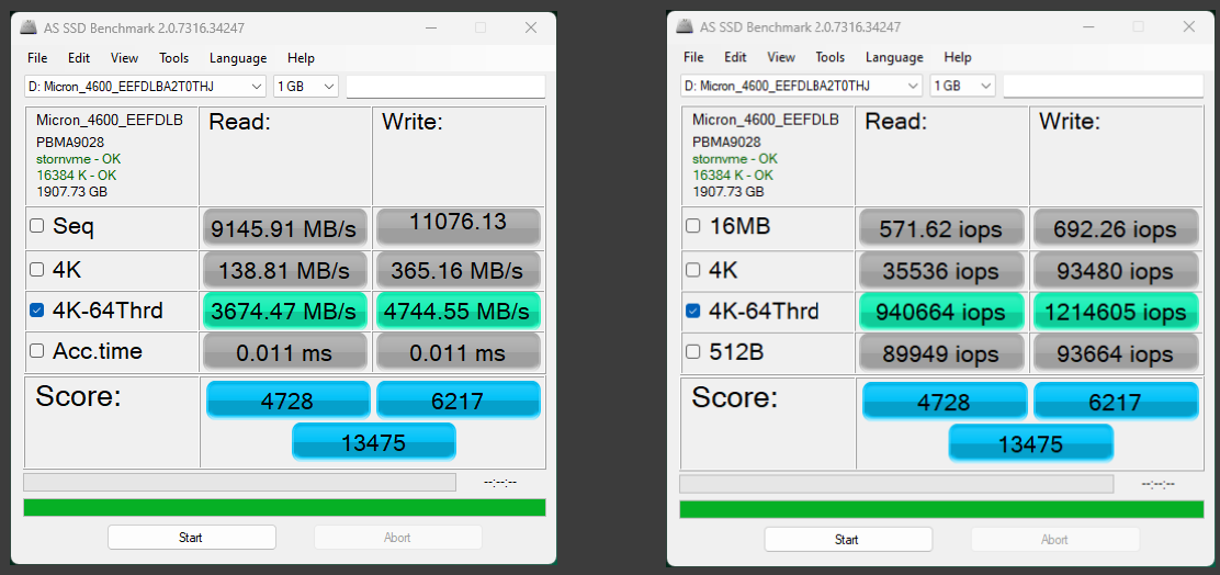 The Micron 4600 high sequential write result of 13.3GB/s surpasses listed specs of 12GB/s by quite a bit.