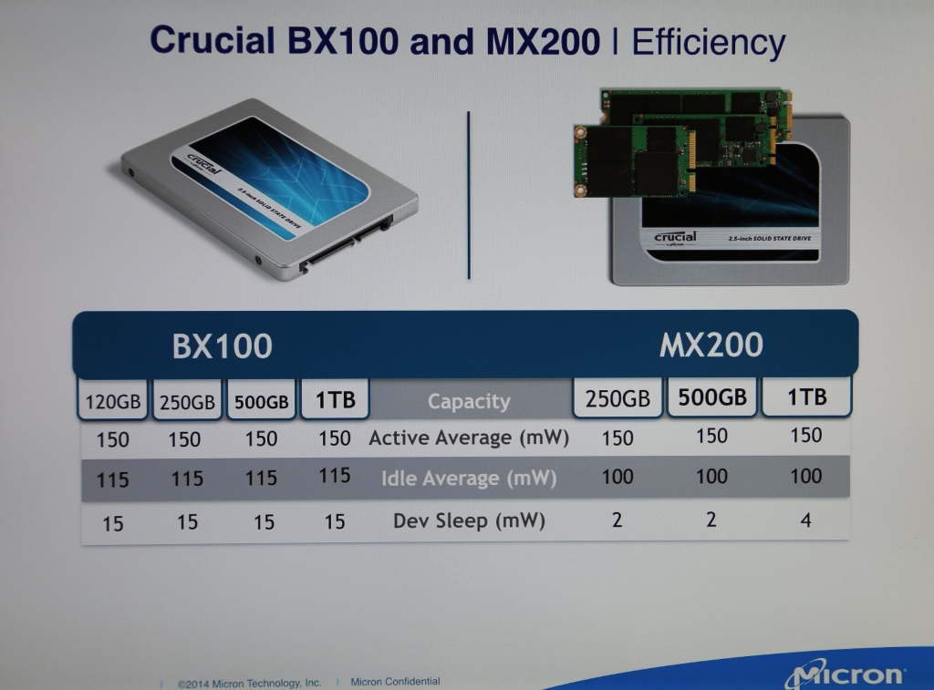 Crucial was also more than happy to throw in power ratings for both SSDs: