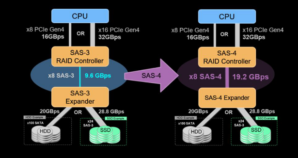 Microsemi is announcing its new SXP 24G series of devices. This represents the industry’s first 24G SAS (SAS-4) expanders for networked storage and servers. 24G SAS effectively doubles the storage interconnect’s bandwidth, which allows for utilizing the full bandwidth of the PCIe Gen 4 lanes by the storage interconnect. Microsemi’s new series of devices are engineered specifically for demanding SAS storage infrastructure needs, delivering reliable connectivity that is both high-performance and low-power. This new connectivity is available to both SAS and SATA SSDs and HDDs within storage subsystems.