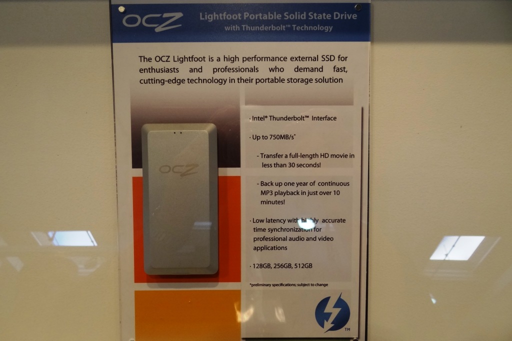 Next up on the list is the new OCZ Lightfoot which is an external SSD based on Intel’s Thunderbolt interface. This SSD will be available in capacities of 128, 256 and 512GB and will have transfer speeds of 750MB/s.