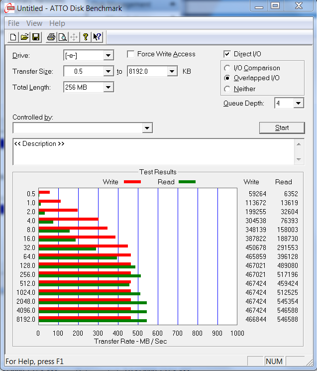 As we reviewed the Vertex 4 in both 256 and 512 capacities, we thought we might do a bit of an update, only to find that one of staff members loved that Vertex 4 256GB SSD too much to let it sit unused and that particular test might take a few days for SSD reacquisition. We did get to quickly pull off a new ATTO result on the Vertex 4 512GB SSD and this is the result: