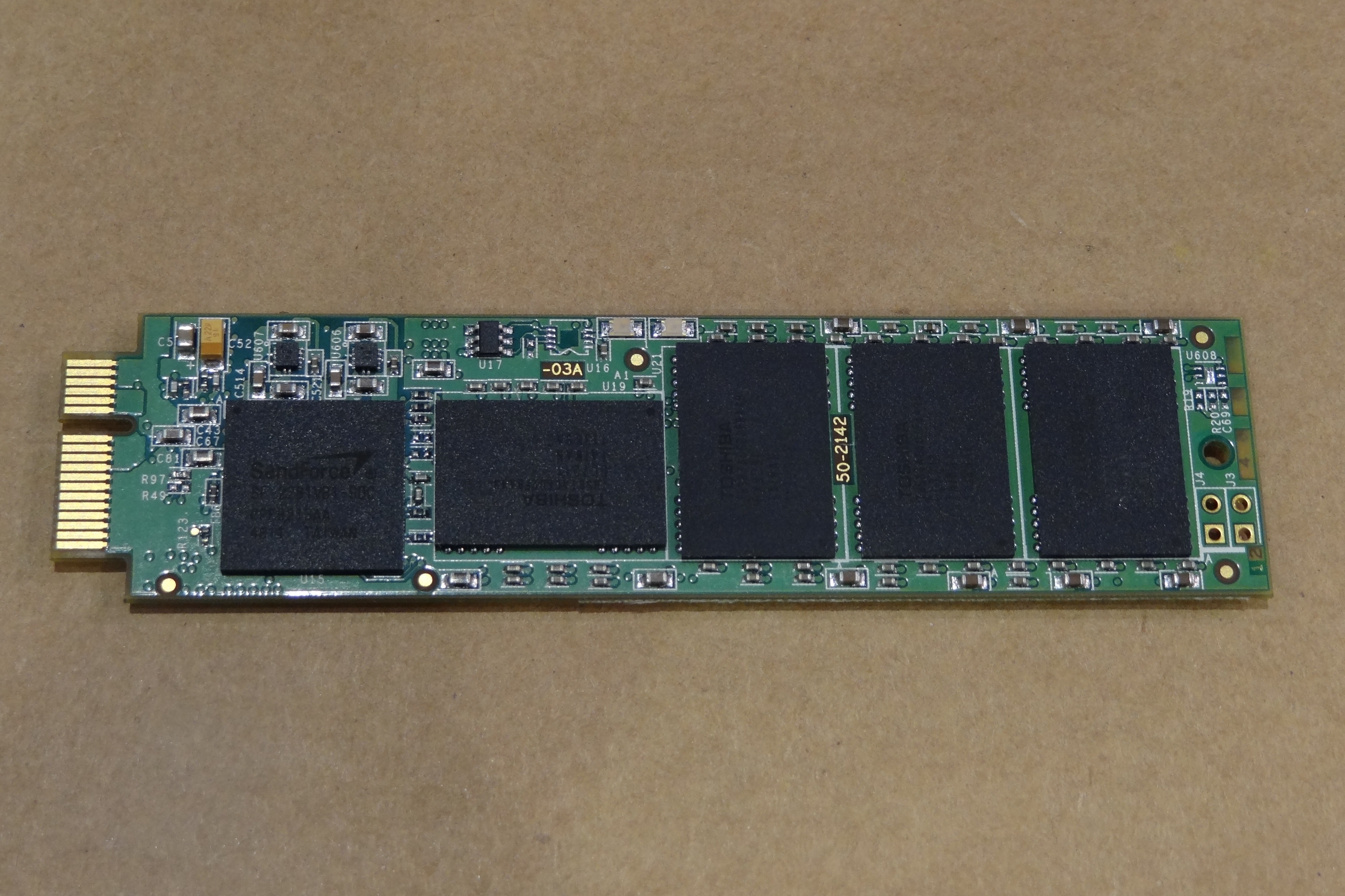 Each mPCIe card will contain either the LSI SandForce SF-2281 or SF-2282 SATA 3 processor and houses a total of eight Toshiba Toggle mode NAND flash memory, four on the front and four on the back.