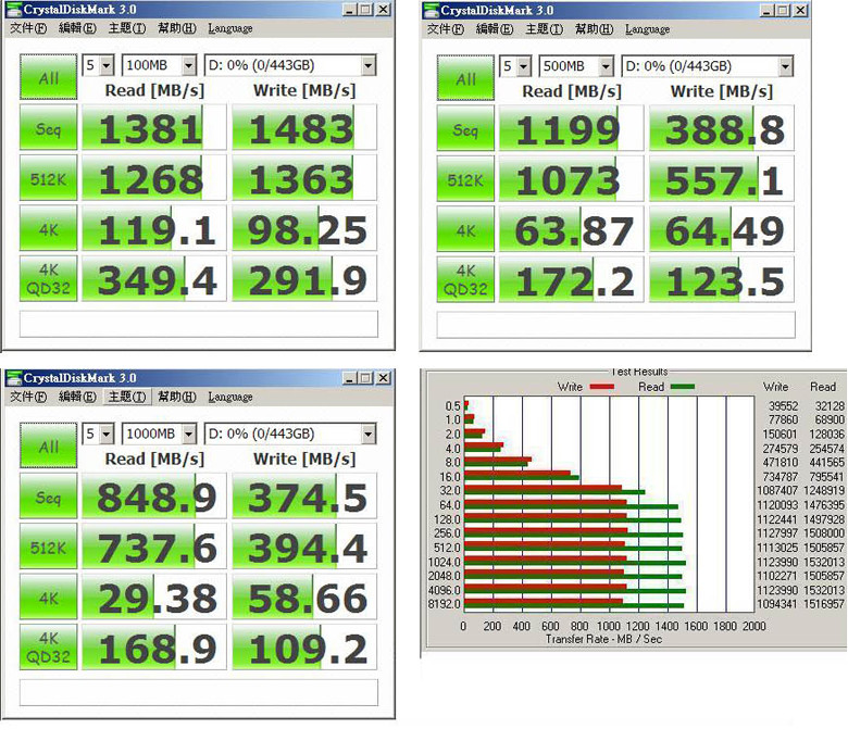- Max. write up to 1500MB/s (measured in ATTO benchmarks)