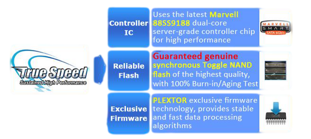 Plextor’s new M6M features the latest server-grade Marvell 88SS9188 controller, Toshiba Toggle NAND memory, and customized firmware provided by Plextor’s own in-house elite engineering team. Also included is Plextor’s proprietary True Protect technology, supporting advanced data integrity and safety, and 256-bit AES full disk encryption.