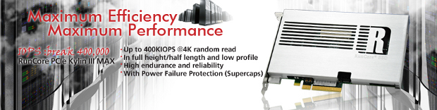 Running through the Runcore website recently resulted in a very interesting find in the name of the RunCore Kylin III MAX PCIe Gen2 SSD. The Kylin III MAX represents one of, if not the highest capacity and performance combination of a PCIe SSD that we have seen to date yet. It is a full-length native PCIe card utilizing a controller that is integrated with multiple high-speed serial on-chip buses and embedded processors to achieve high speed data transfer between the host and storage device. The Kylin III MAX operates as a read cache card for cloud computing acceleration applications; or for servers, web mail / exchange mail servers, or graphics workstations.