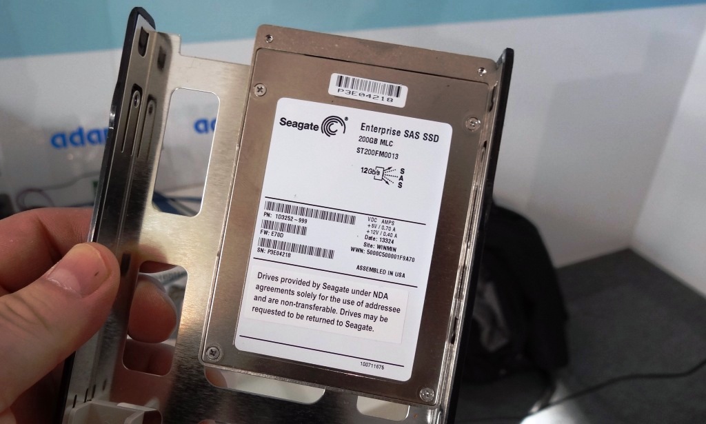 The next step up on the Seagate product line is one of the worlds first 12Gb/s SAS SSDs and definitely the first that we saw demonstrated at ceBIT Germany 2013 a short time ago. The Seagate 1200 SSD is available in either a 1.8″ or 2.5″ form factor, is available in capacity’s of 200, 400 and 800GB, and performance is listed at 800MB/s read, 640MB/s write with up to 120,000 IOPS.