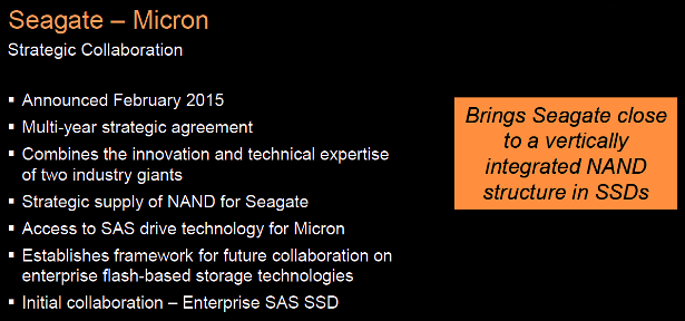 Darren Thomas, Micron’s Vice President of Storage, observes that “The Seagate-Micron collaboration brings together some of the best minds in the dynamic world of storage — Seagate’s SAS expertise combined with Micron’s flash leadership is enabling us to truly redefine the future of enterprise storage development. The first example of this relationship is the introduction of a data-intensive SAS solution, expanding our SSD portfolio to meet the needs of our enterprise customers.”