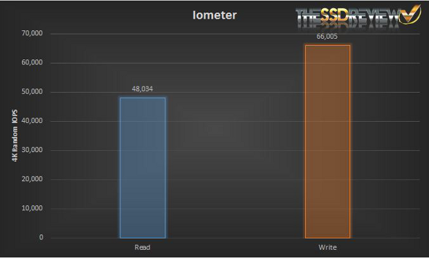 Our Iometer “MAX IOPS” testing yielded maximum read IOPS of 48,034 and maximum write IOPS of 66,005.