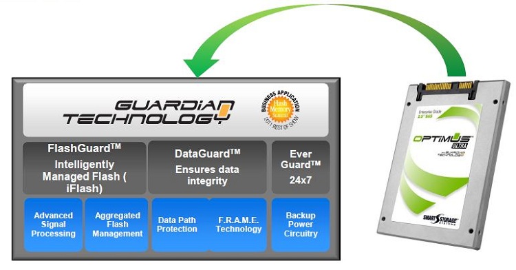 Aside from releasing what looks to be a very capable SSD, SMART Storage has some additional tricks up their sleeve when it comes to their new baby. Among these extra inclusions is FlashGuard, which serves to extend the durability of MLC flash to 100,000 write erase cycles, putting it ahead of eMLC and on par with SLC. SMART would not go into detail regarding the precise operation of FlashGuard, only stating that it utilized “Aggregated Flash Management” as well as “Advanced Signal Processing” in order to facilitate the flash’s extra fortitude.
