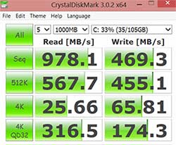 Yes that’s absolutely correct, the little known Sony just may be one of the most powerful ultrabooks on the planet right now and we hadn’t a clue. It was only after searching around that I found my good friend Lisa Gade’s review of the Sony Vaio Pro 13 where her Crystal DiskMark performance result displayed 978MB/s read transfer speeds. Many may not know it but Lisa helped us get things off the ground when we first started in the website business with some fine advise that paid great dividends. But that’s neither here nor there right now…back to MPCIe SSDs!