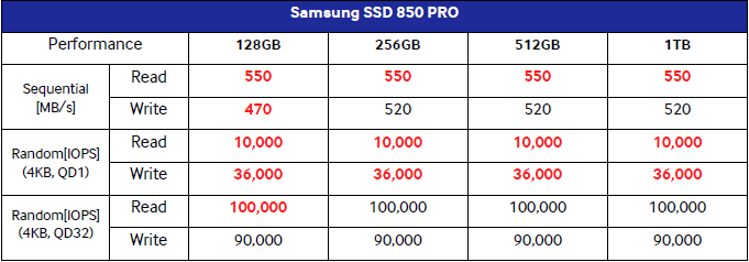 The Samsung 850 Pro is a 7mm 2.5″ form factor and is available in four capacities, 128GB ($118.99), 256GB ($187.99), 512GB ($375.99), and 1TB ($599.00). What is really cool about the new 850 Pro is that it is the first ever consumer SSD with 3D NAND, featuring Samsung’s second generation 3D V-NAND. This new NAND allows for lower power consumption, twice as much endurance as planar 2D NAND. Other features for the SSD include TRIM, S.M.A.R.T. Monitoring, DevSleep, AES 256-bit hardware encryption that supports TCG/Opal V2.0, Encrypted Drive (IEEE1667), and Samsung Magician’s RAPID mode RAM caching support.