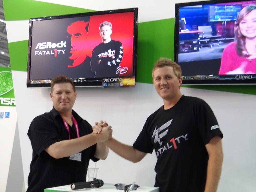 WHOOPING Fatal1ty’s butt in a bit of PC gaming!!! – Ok so maybe not but we did get to play. Excellent guy and an excellent opportunity for this shot don’t ya think!?!?! I did beat Johnathan at a game of pool at the Corsair Party later that day if you would believe it though!