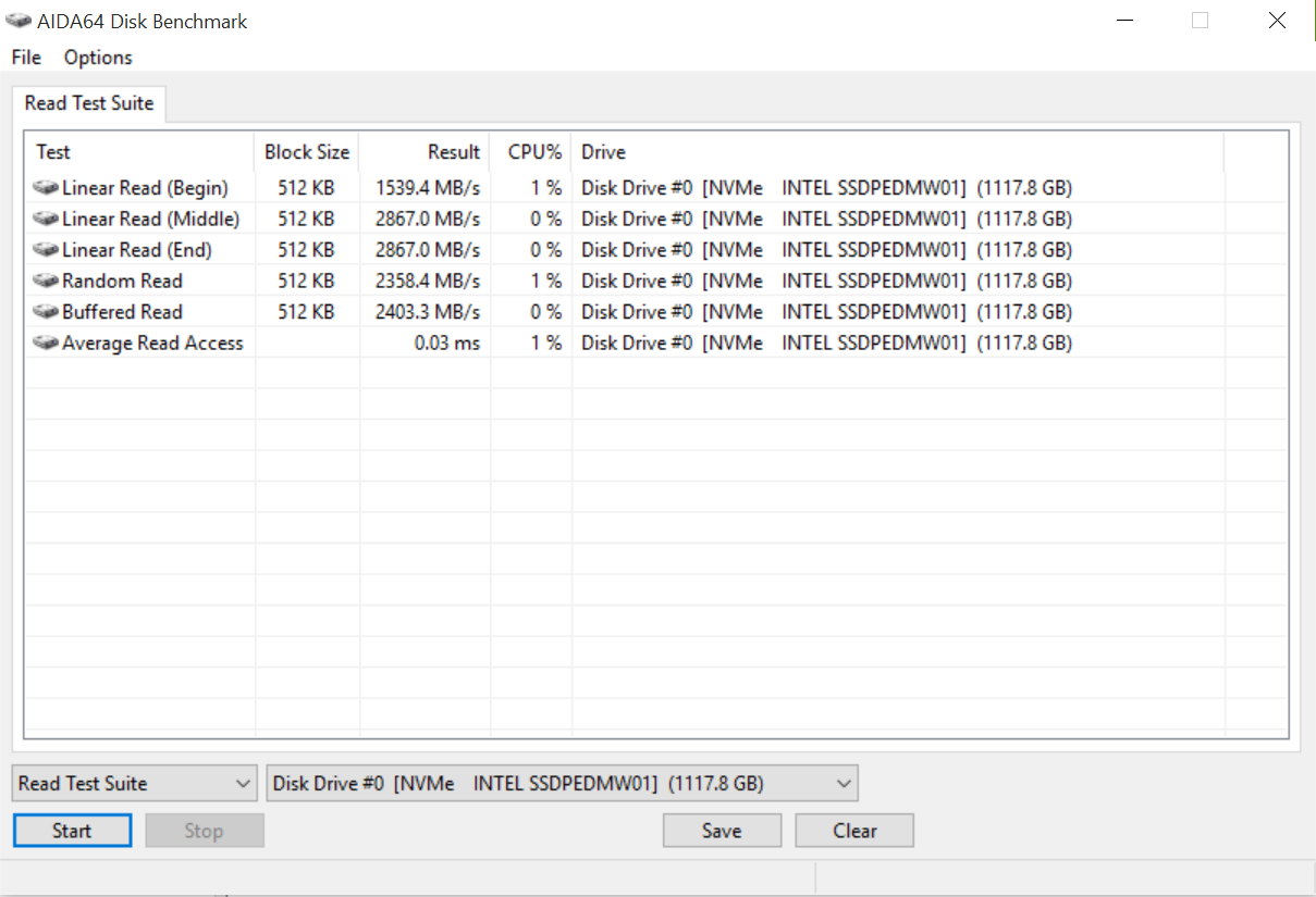 AIDA64 Extreme is a 30 day time limited trial, after which it must be purchased. It encompass the full range of PC testing, but specific to SSDs, has both a read and write test suite. This example displays the result of our Intel 750 SSD: