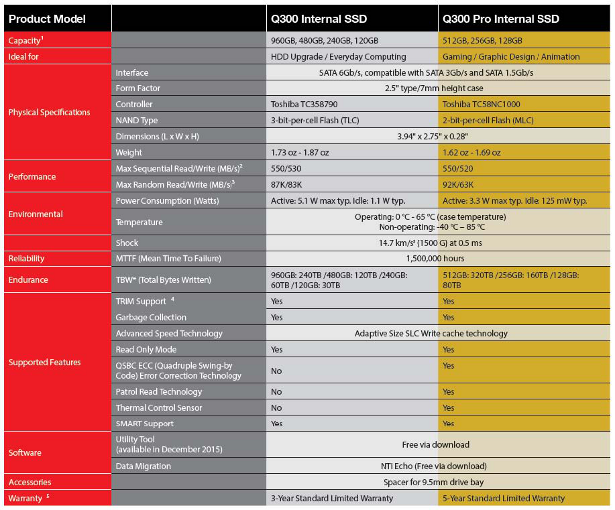 Toshiba is stating MSRP pricing as (Q300 120GB) $99.99, (Q300 240GB) $159.99, (Q300 480GB) $309.00, and (Q300 960GB) at $449.99. MSRP for the Q300 Pro series is stated as (Q300 Pro 128GB) $124.99, (Q300 Pro 256GB) $199.99, and (Q300 Pro 512GB) $389.99 You can view the product page for the Q300 series here, and for the Q300 Pro series here. The Toshiba press release announcing the Q300 and Q300 Pro series of internal SSDs can be viewed in its entirety here.