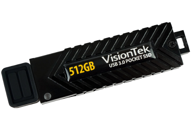 VisionTek Products LLC, U.S.-based producer of award-winning, high-performance accessories and upgrades for PCs and Macs, is announcing the addition of three new capacities to its lineup of VisionTek USB 3.0 Pocket SSDs in thumb drive-sized form factor. The three new capacity offerings are 128GB, 256GB, and 512GB, all utilizing high-endurance MLC NAND.
