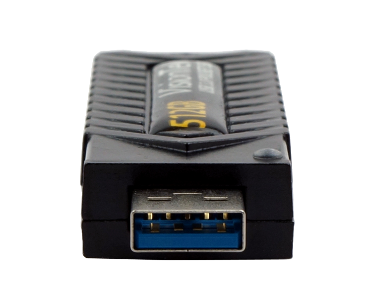 VisionTek’s USB 3.0 Pocket SSD is similar in size to a standard USB thumb drive, but the aircraft-grade aluminum housing encases a fully functional Solid State Drive (SSD). The three new capacities deliver sequential read speeds of (up to) 450MB/s, and sequential write speeds of (up to) 155MB/s (128GB – 150MB/s). Random 4K read speeds for all three capacities are stated as (up to) 25,000 IOPS, with random 4K write speeds of (up to) 27,000 IOPS. This represents transfer speeds that are up to 20 X faster than a standard USB 2.0 flash drive.